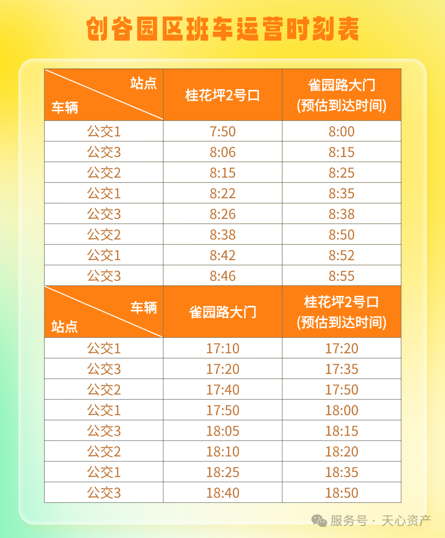 雀園路大門(南門)→地鐵1號線[桂花坪]2號口(晚17:10-18:50)